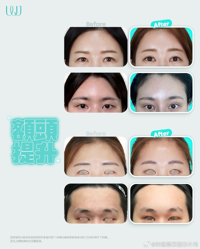如果你也在为中上庭比例烦恼,真心推荐首尔江南区的韩国 WJ 原辰整形外科医院,这个额头提升项目一定要试试,早做早摆脱显老感,拥有精致五官比例!